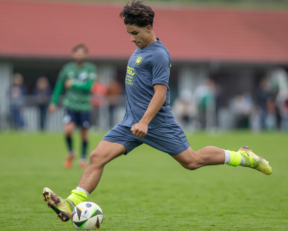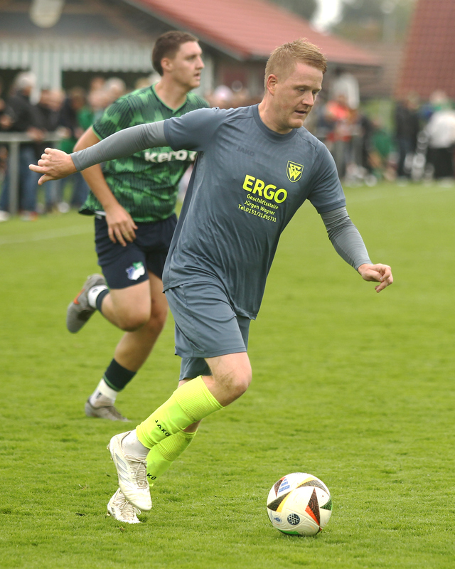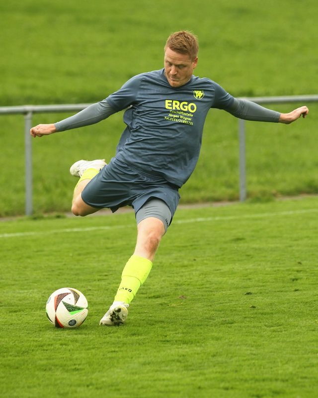(wh) - Unsere Erste (13.) hat ihre Talfahrt fortgesetzt und beim 4:2 (4:0) in Alberweiler (6.) zum vierten Mal hintereinander (klar) verloren. Für die Wacker-Treffer sorgten die Gastgeber mit einem Eigentor (55.) und Tim Scherff (Foto) mit einem sehenswerten, weil sauber platzierten Schlenzer (95.) aus 18 Metern.