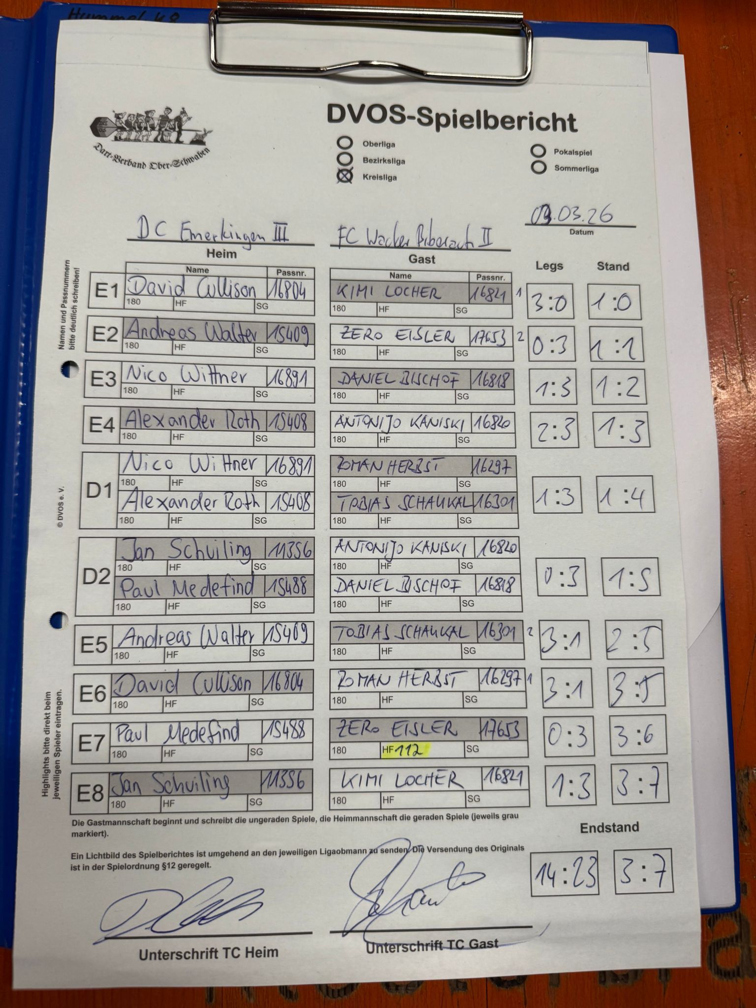 (ge) - Die zweite Mannschaft unserer Darter hat sich beim punktgleichen DC Emerkingen III mit 7:3 durchgesetzt und damit den dritten Platz erobert.