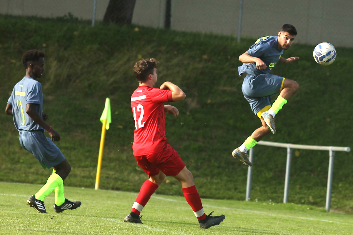 Die Partie nahm den erwarteten Verlauf: Die favorisierten Gäste ergriffen vom Anpfiff weg die Initiative und erspielten sich schon bei ihrem ersten Angriff in der 2. Minute eine glasklare Tochance, die der alleine aufs Wacker-Gehäuse zustürmende Akteur jedoch vergab. Er scheiterte an Keeper Viktor Haufler, der sich auch danach noch ein paar Mal auszeichnen konnte. Machtlos war er jedoch beim Führungstreffer der SGM in der 24. Minute durch Leo Gnandt.
