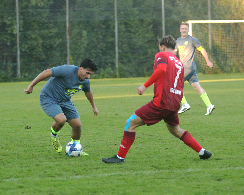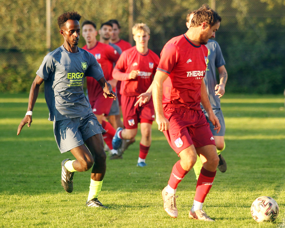 Die personell aus dem letzten Loch pfeifenden Wackeraner um Spielertrainer Mehmet Sahin (rechts im Bild) mühten und wehrten sich auch danach redlich, zeigten zudem die eine oder andere gefällige Ballstafette im Spielaufbau, in den gegnerischen Strafraum schafften sie es aber bis zur Pause nur sporadisch und im zweiten Durchgang noch seltener. Im Gegensatz zu dem Gästen, die einfach mehr Durchsetzungskraft bewiesen und immer wieder gefährliche Angriffe vortrugen. So kamen sie - logischerweise, ja zwangsläufig - nach einem Eckball auch zu ihrem zweiten Treffer, auch wenn sie dafür bis zur 65. Minute brauchten.