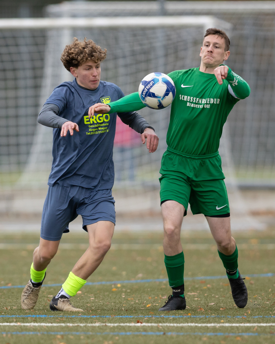 Nach dem Seitenwechsel entwickelte sich dann ein gänzlich anderes Spiel: Nach ihrem schnellen Anschlusstreffer zum 3:1 in der 50. MInute witterten die Gäste Morgenluft. Sie bestimmten nun über weite Strecken das Geschehen. Wobei sie von den sich häufenden Fehlern der Unseren profitierten: Kämpferisch hielten die zwar jederzeit dagegen, vom Spielfluss und der Zielstrebigkeit der ersten halben Stunde war aber kaum mehr was zu sehen. Schlimmer noch: Ähnlich wie am Vorsonntag in Winterstettenstadt ließen sich die Blaugelben von der zunehmenden Hektik irritieren und "beschäftigten sich mit allem, nur nicht mit Fußballspielen", wie Wacker-Trainer Marcin Zukowski zurecht monierte. So kassierten sie nicht nur eine Reihe (unnötiger) gelber Karten und eine gelb-rote, sondern auch noch ein weiteres Gegentor in der 74. Minute. In der Schlussphase hatten sie darob erhebliche Mühe, den 3:2-Vorsprung über die Zeit zu retten. Mit einigem Massel und guten Reaktionen ihres Keepers Yero Jagana schafften sie es schließlich. Er war in der 60. MInute für den mit Schulterverletzung aus dem Spiel genommenen Michael Werner eingewechselt worden. Ihm wünschen wir gute Besserung.