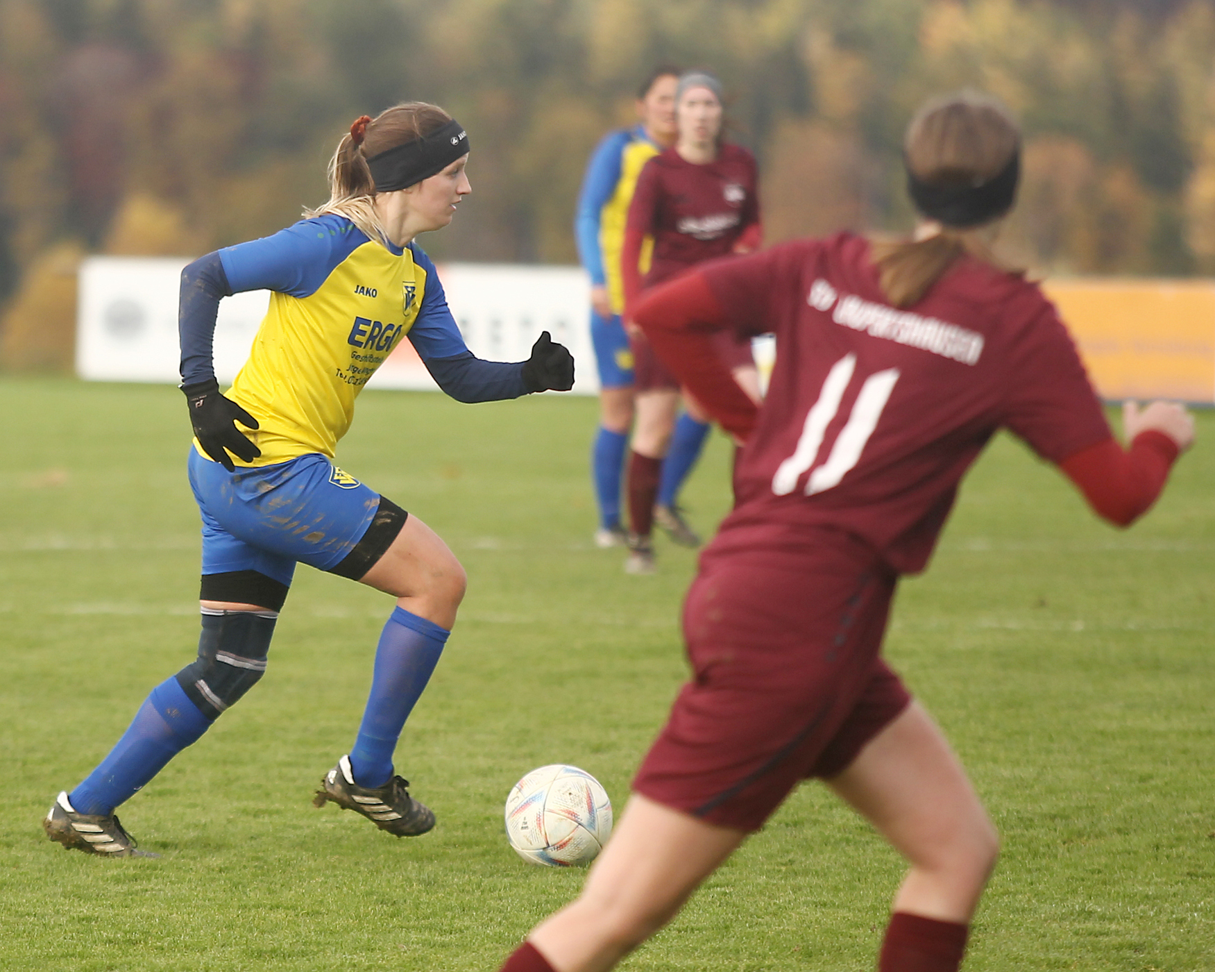 Unsere Frauen haben bei Schlusslicht SV Laupertshausen mit 1:0 (1:0) gewonnen und sich damit auf Platz drei in der Tabelle verbessert. Das Goldene Tor (35.) erzielte Verena Lootz, drei MInuten nach ihrer Einwechslung.