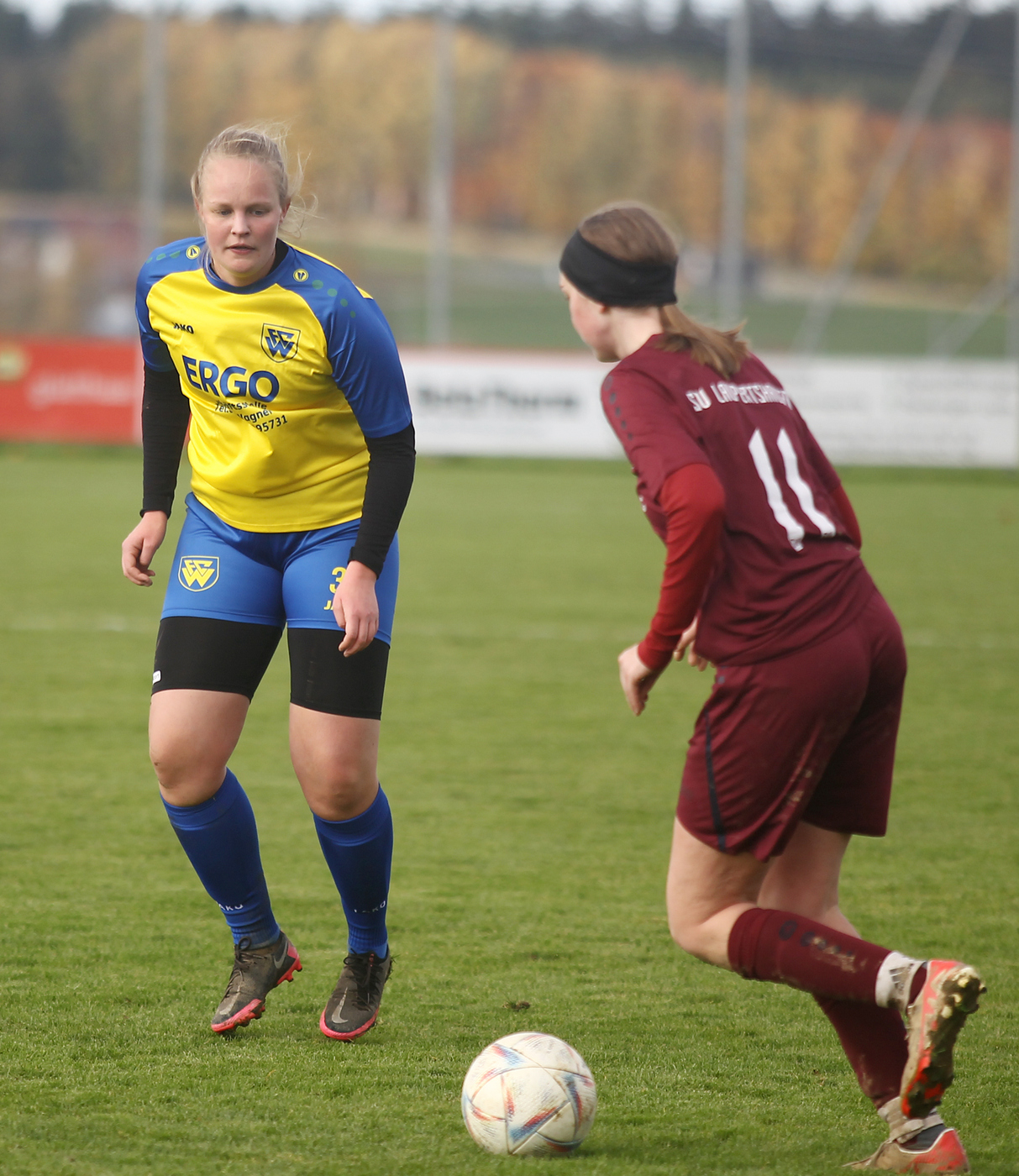 In der 32. Minute nahm das Trainerteam des FCW den ersten Wechsel vor: Johanna Fink verließ das Feld, für sie kam Verena Lootz. Nur drei Minuten später zahlte sich dieser Wechsel aus: Verena Lootz traf zur 1:0-Führung.