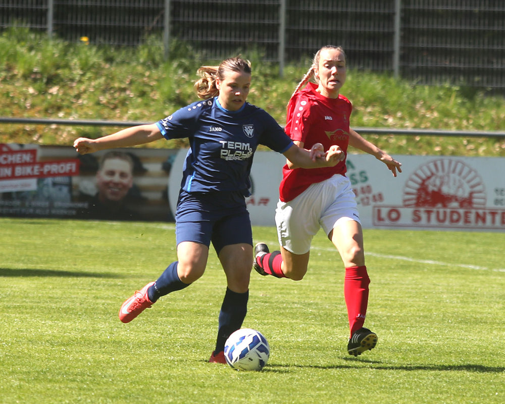 In Reinstetten entwickelte sich ein intensives, körperbetontes und emotionales Spiel, in dem beide Teams von Beginn an klar machten, dass sie die drei Punkte wollten. Am Ende setzte der Spitzenreiter den entscheidenden Treffer, während Wacker (im Bild mit Sabrina Riedmüller) trotz großem Kampf ohne Torerfolg blieb.