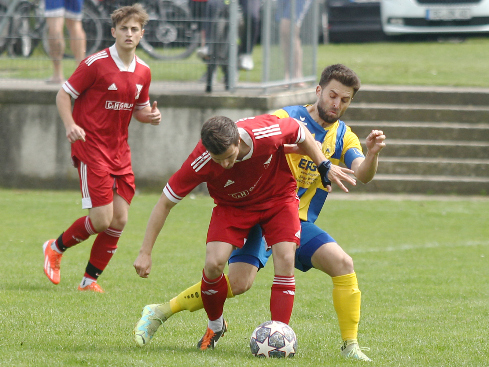 Unser Foto mit Manuel Mohr (blaugelb) stammt aus der Saison 23/24, als die Unseren in Muttensweiler mit 1:0 unterlagen.