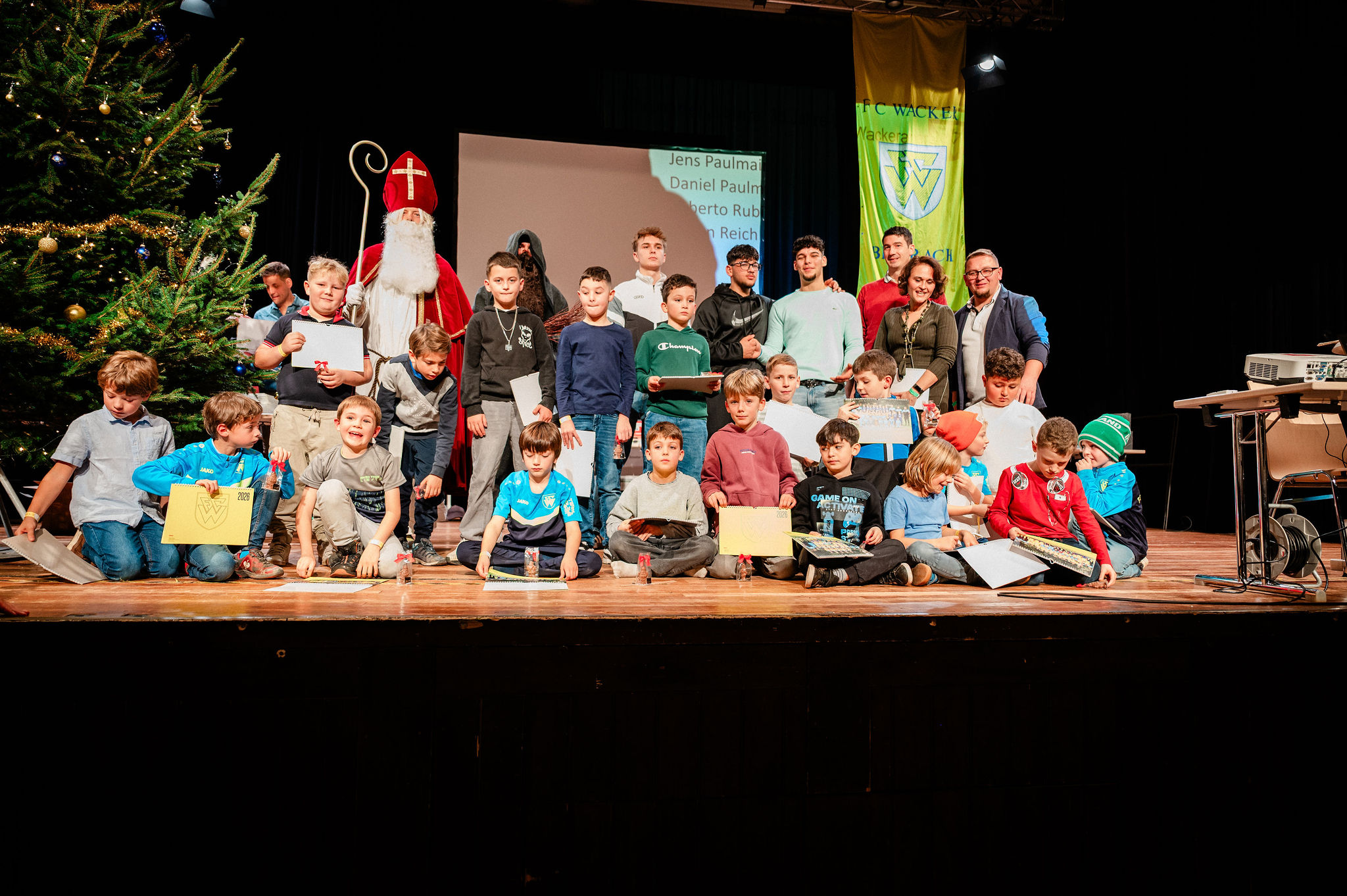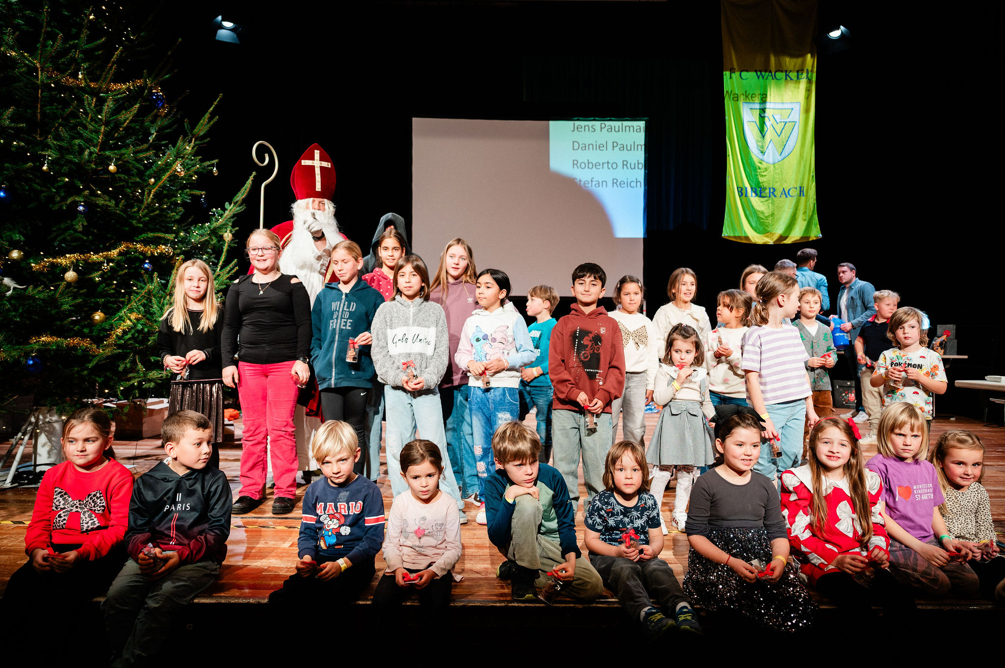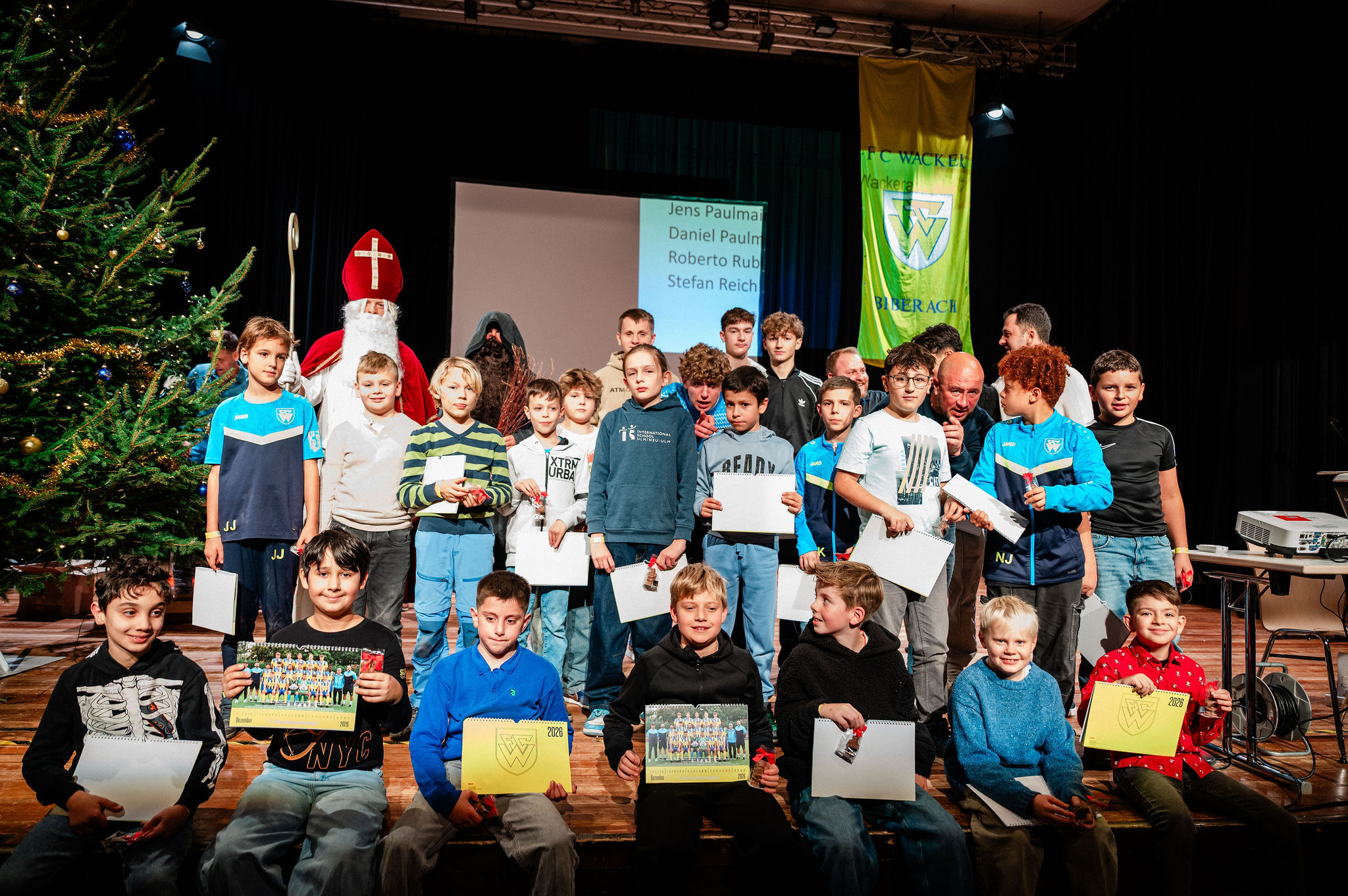 (sr) - Rund 400 Gäste hat der FC Wacker zu seiner Weihnachtsfeier in der festlich geschmückten Gigelberghalle begrüßen können. Ein Highlight war der Besuch des Nikolaus, der vor allem bei den Kindern für strahlende Augen sorgte.