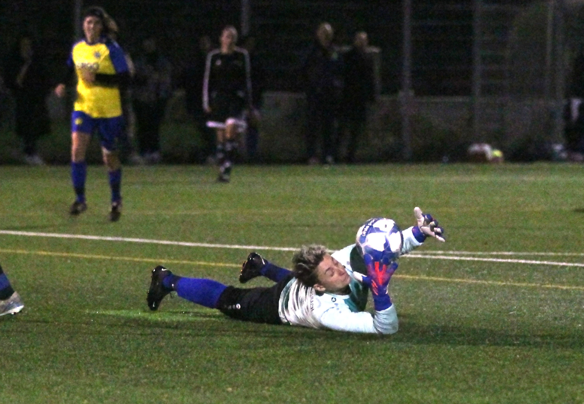 Nach dem Seitenwechsel dominierte Wacker meist das Geschehen. In der 57. Minute erzielte Luca Gebert nach Vorarbeit von Melissa Demir das 3:2. Trotz einiger gefährlicher Standards und Angriffe des SV Burgrieden brachte Wacker (im Bild mit Torhüterin Natascha Schmid) den Vorsprung mit Einsatz und Kampfgeist über die Zeit.
