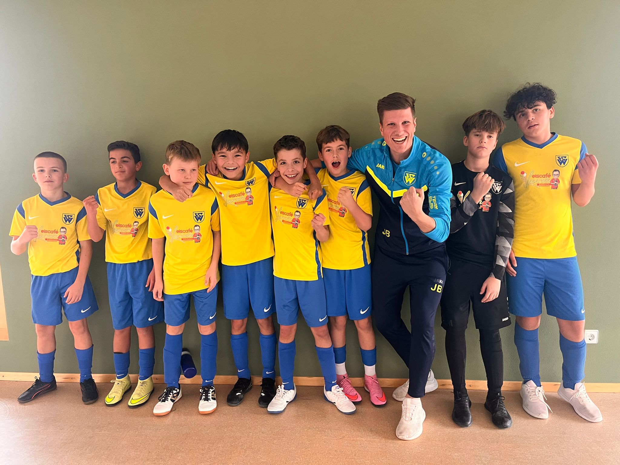 (jb) - An der Vorrunde der Hallenbezirksmeisterschaft hat unsere D-Jugend mir drei Teams teilgenommen: Dabei schaffte die D1 (Foto) den Sprung in die Zwischenrunde, während die D2 und D3 ausschieden. Insgesamt 85 Mannschaften beteiligten sich in 17 Gruppen: Die Erst- und Zweitplatzierten jeder Gruppe qualifizierten sich für die Zwischenrunde.