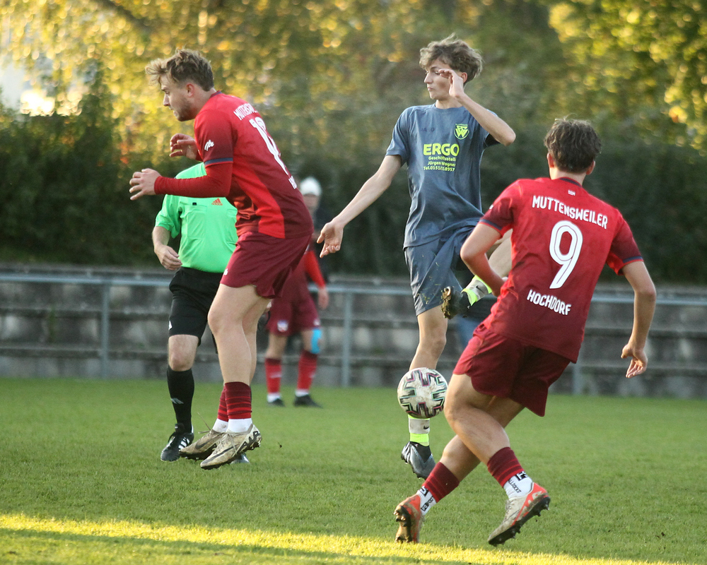 (wh) - Unsere stark ersatzgeschwächte Erste (13.) hat ihr Heimspiel gegen die SGM Muttensweiler/Hochdorf (2.) mit 2:0 (1:0) verloren. Für den ungefährdeten Sieg der Gäste sorgten Leo Gnandt (24.) und Luca Kaiser (65.).