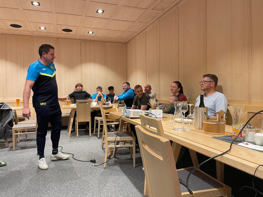 Nach der gemeinsamen Anreise stand am Freitagabend zunächst ein gemütliches Beisammensein im Hotel auf dem Plan. Bei leckerem Essen und vielen guten Gesprächen wurden neue Ideen für den Trainingsalltag und die Jugendarbeit im Verein gesammelt. Nach dem Abendessen wurde in einer Gesprächsrunde über die Trainingsphilosophie in Deutschland und über altersgerechte Trainingsinhalte diskutiert.