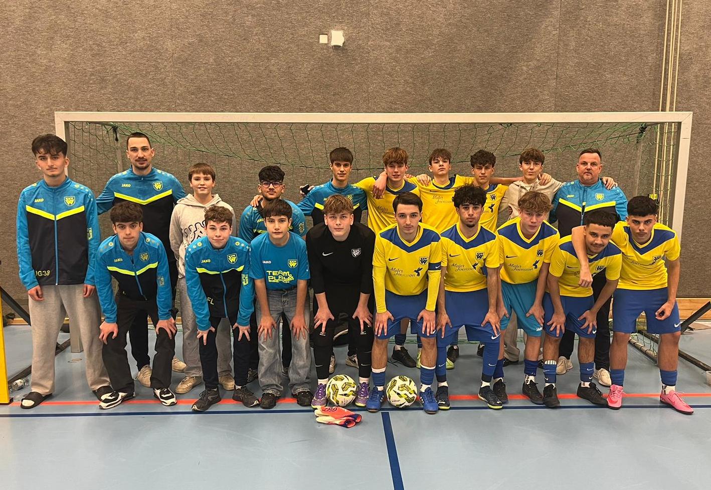 (kp) - Unsere B-Junioren sind beim Hallenturnier in Allmendingen mit zwei Teams angetreten: Dabei holte sich die B1 (auf unseren Bildern und Videos im gelben Trikot) den Siegerpokal, während die B2 den neunten Platz belegte.